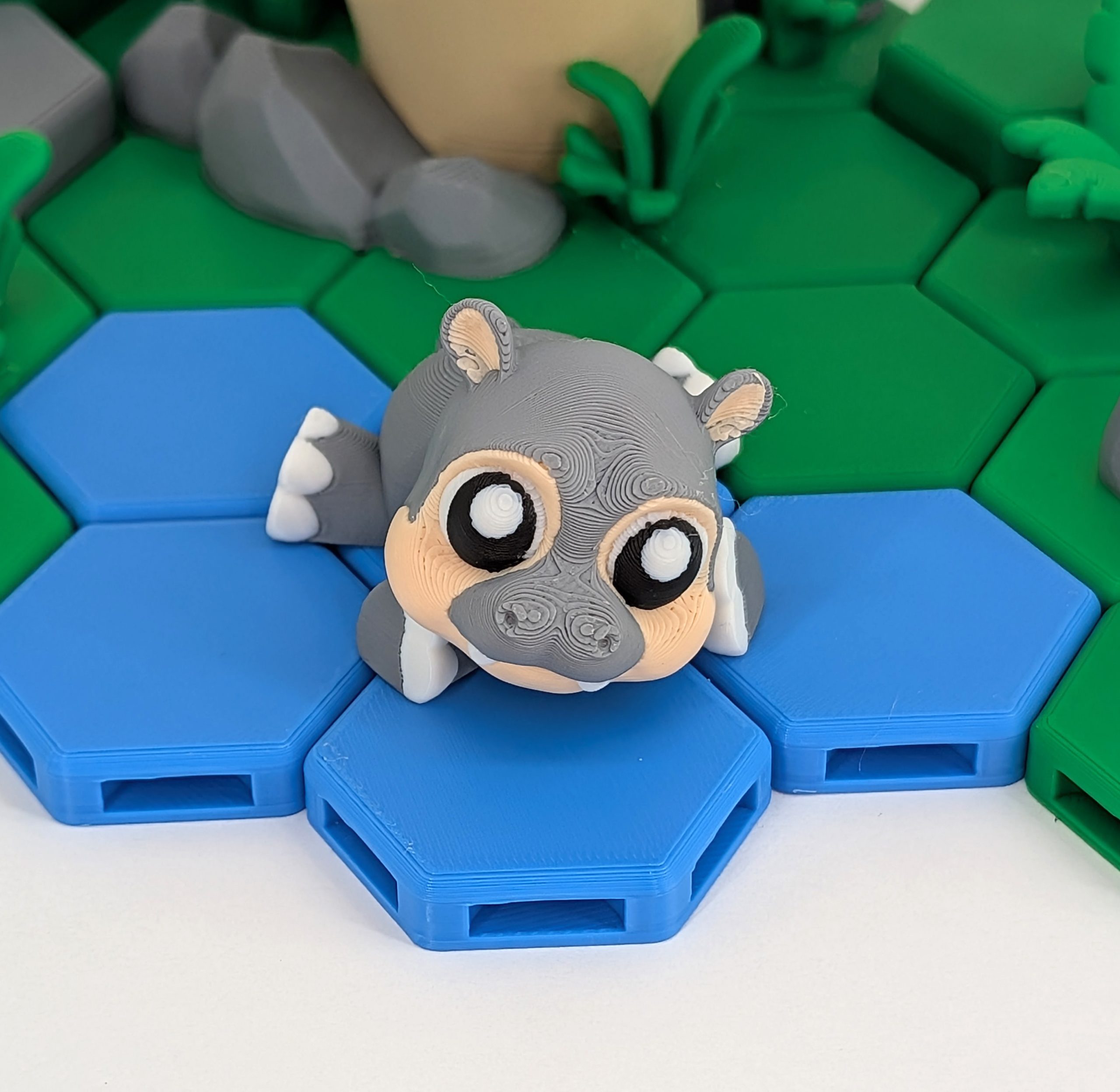 The Hippo Articulated 3D Printed Model is built for interaction. Each joint moves smoothly, allowing you to stretch it into a lounging pose, angle it mid‑stride as if it’s plodding through the river, or open its mouth wide in a playful yawn. It’s not about realism—it’s about fun. The stylized proportions and expressive design make this hippo a standout piece, whether it’s perched on a desk, waddling across a bookshelf, or soaking in the middle of your Hex Habitat.