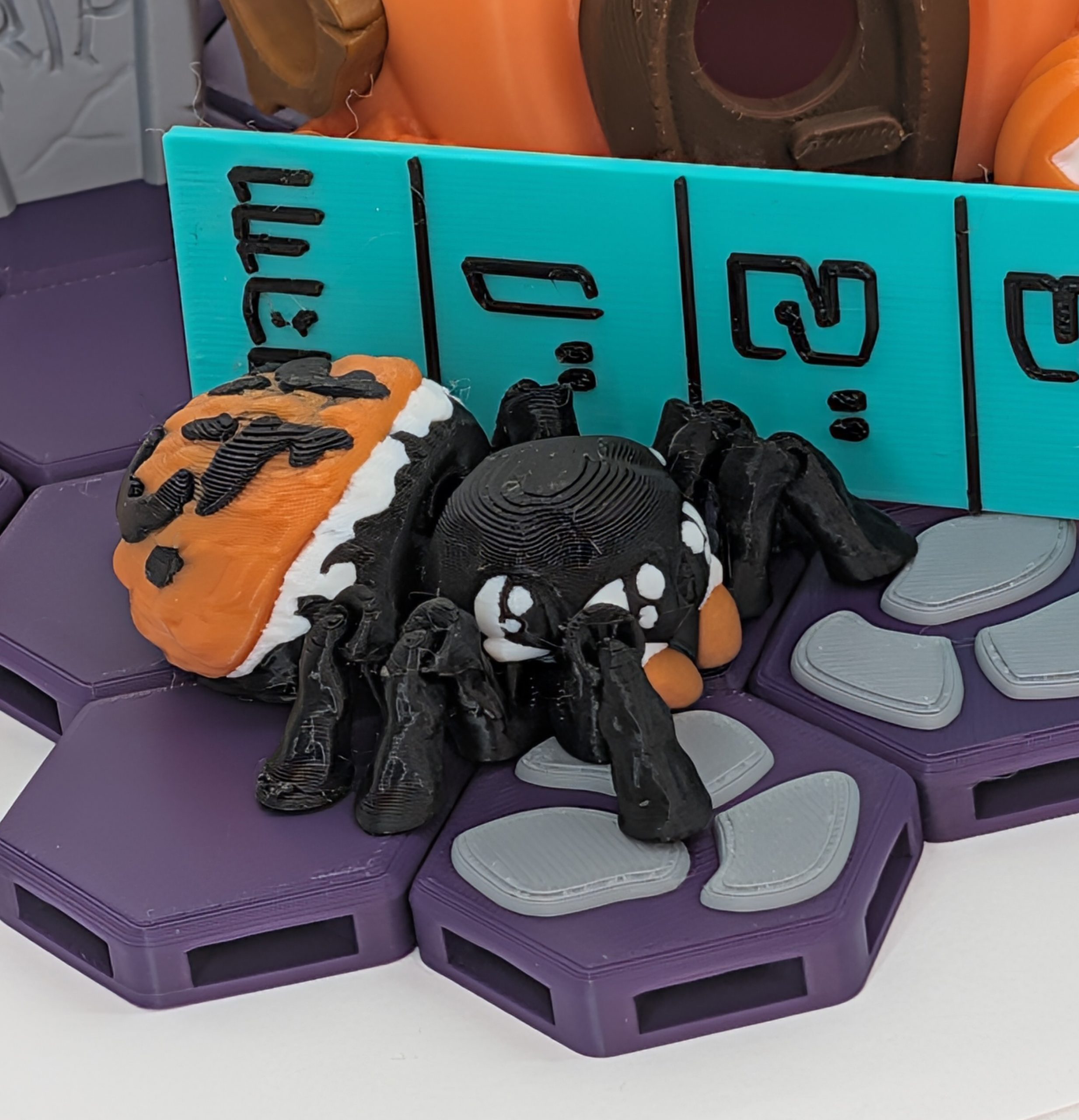 The Pumpkin Spider Articulated 3D Printed Model is designed for interaction. Each joint moves smoothly, allowing you to stretch it into a wide, crawling stance, curl it into a resting pose, or angle its pumpkin‑like body so the carved face catches the light. It’s not about realism—it’s about fun. The stylized proportions and Jack‑o’‑Lantern details make this spider a standout piece, whether it’s perched on a desk, creeping across a bookshelf, or haunting your Hex Habitat.