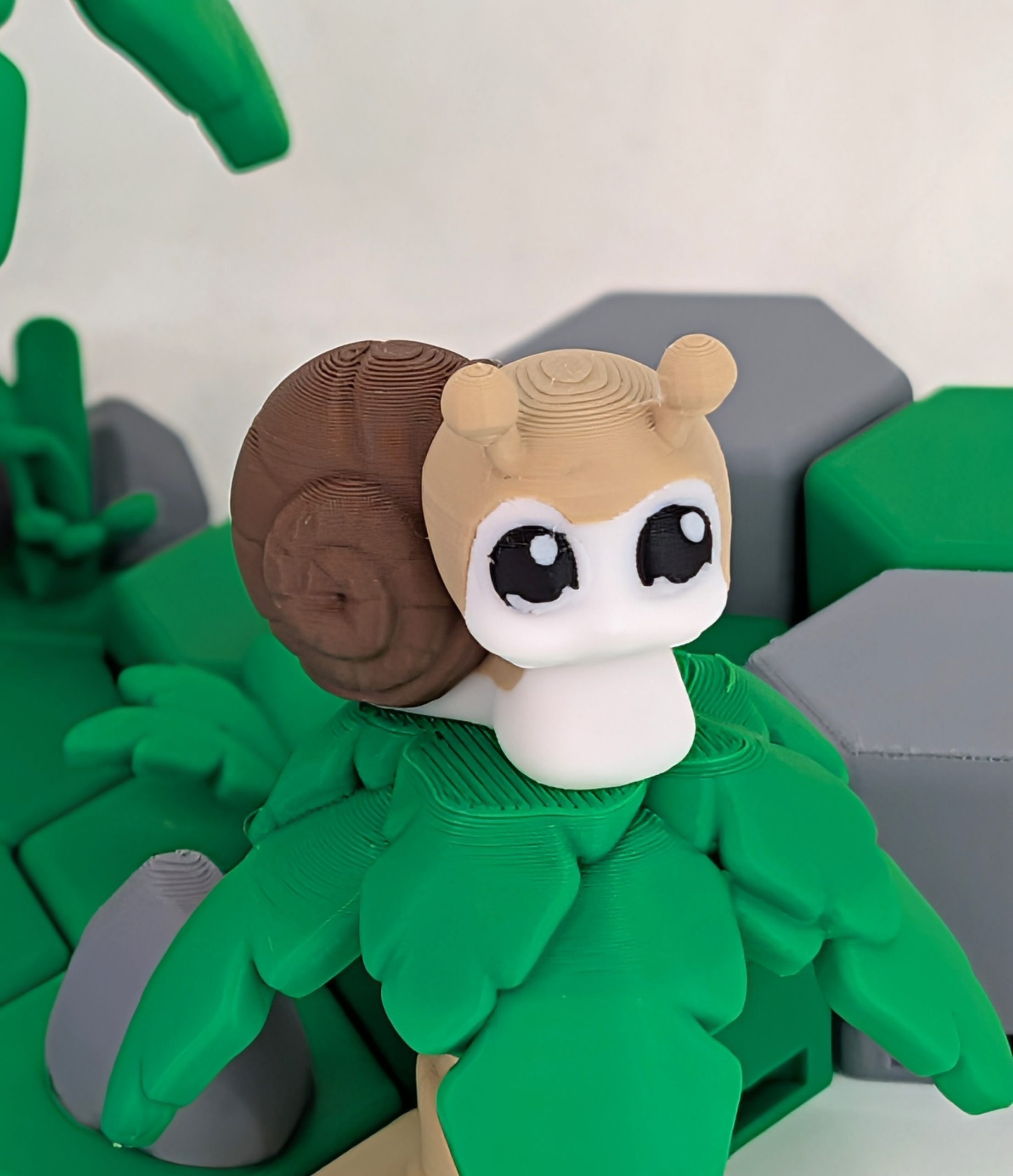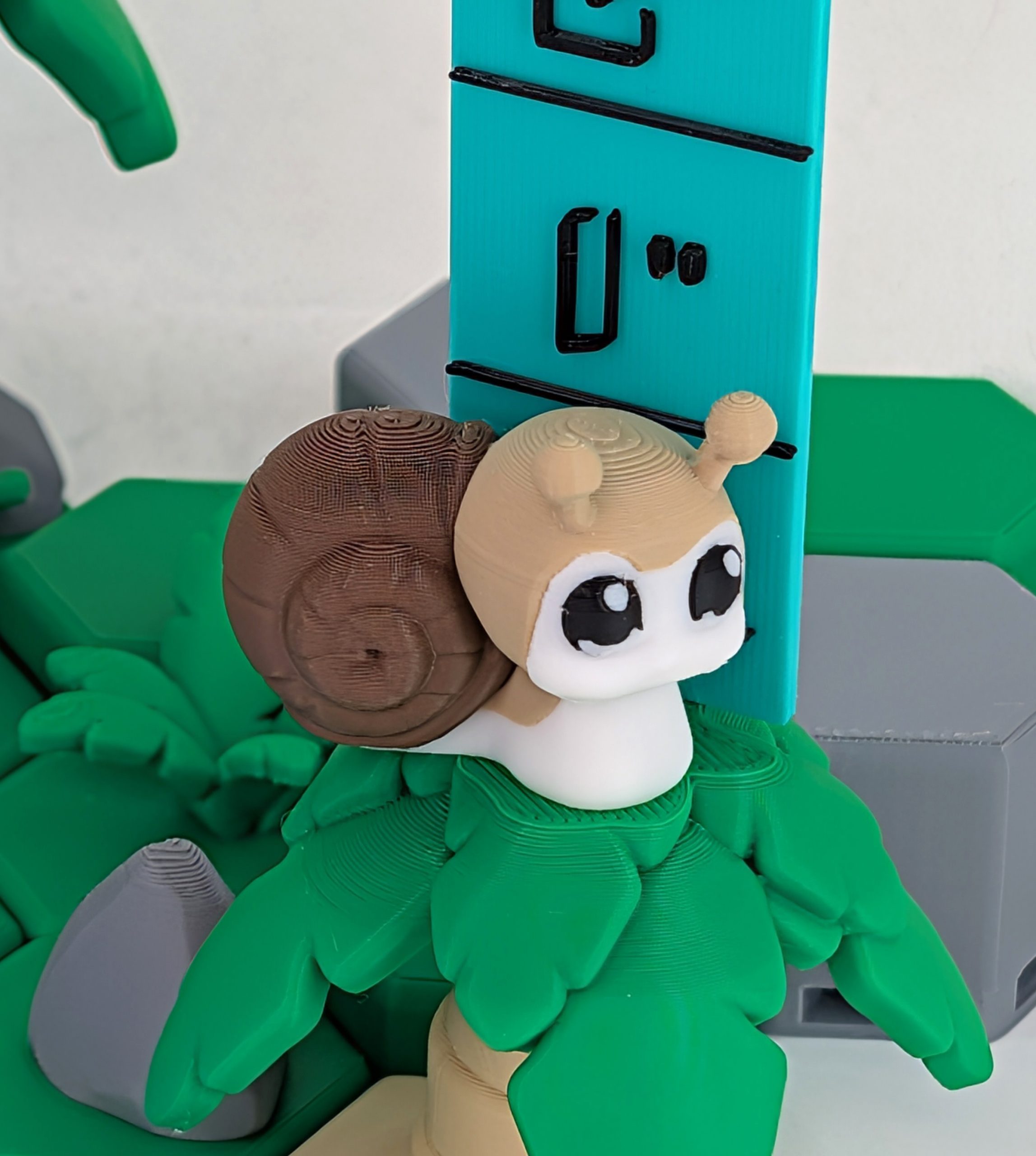 The Cute Snail 3D Printed Model is designed as a delightful display piece. Its stylized proportions and expressive details make it a standout figure, whether it’s perched on a desk, nestled on a shelf, or inching through your Hex Habitat.