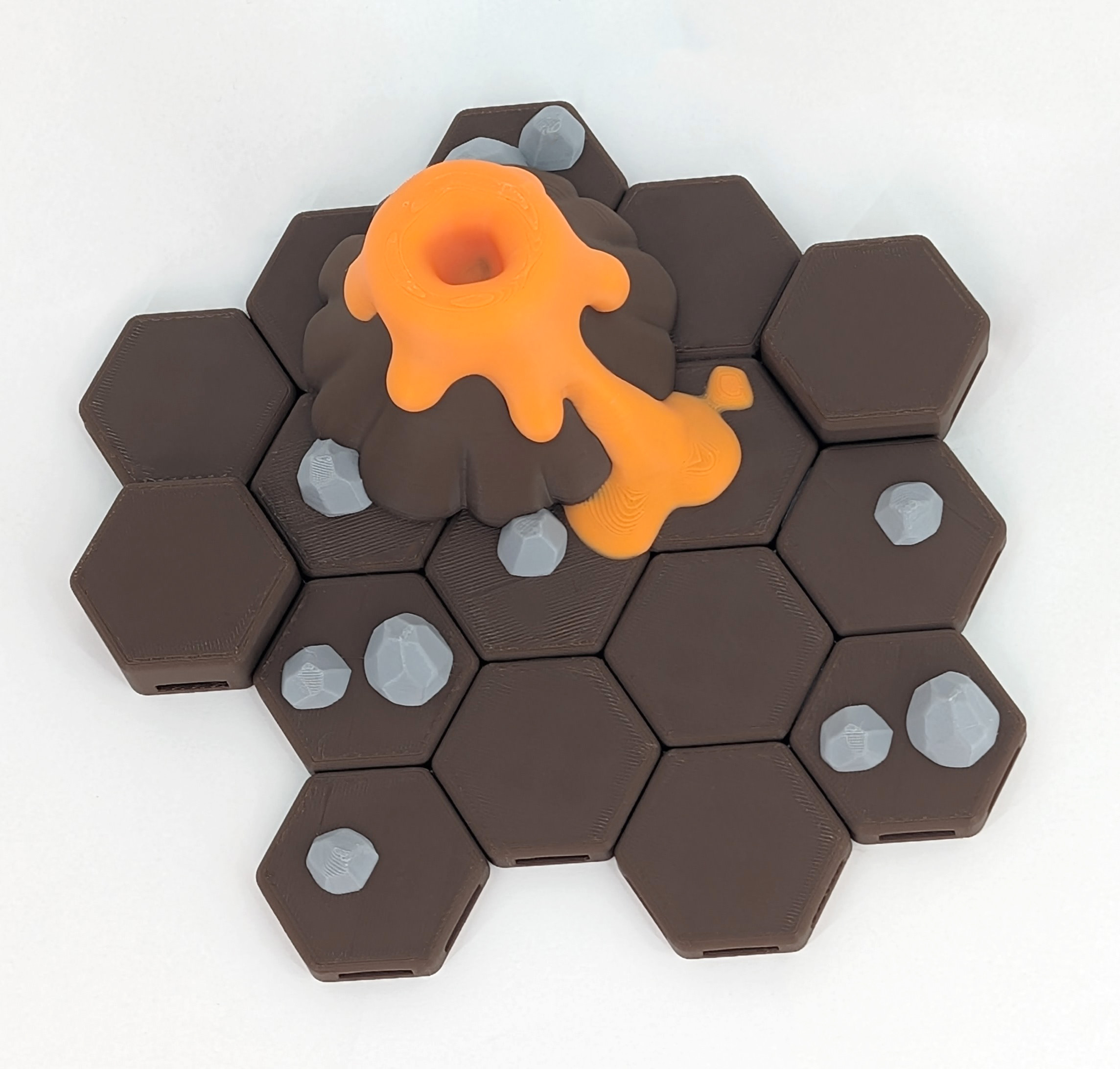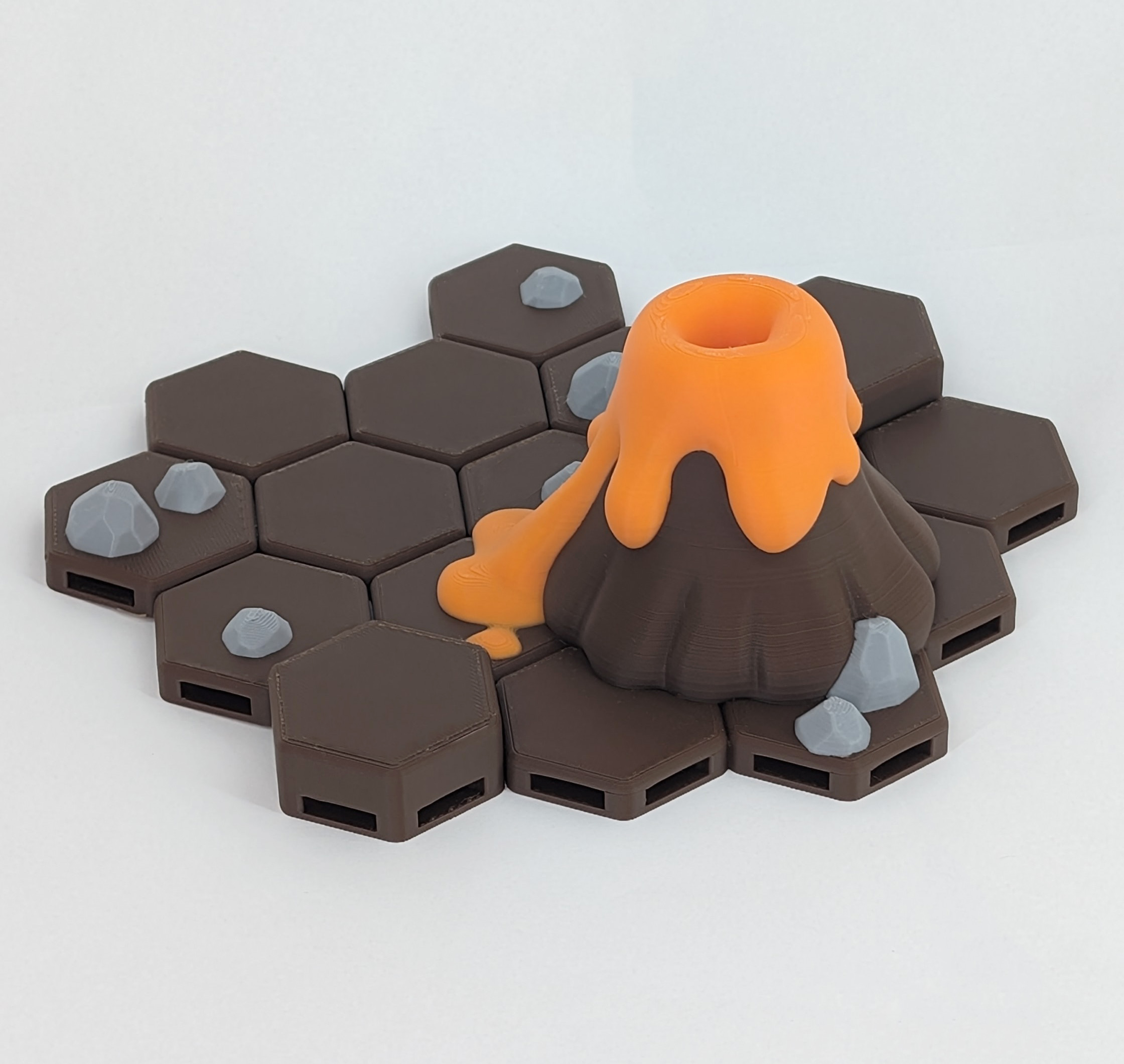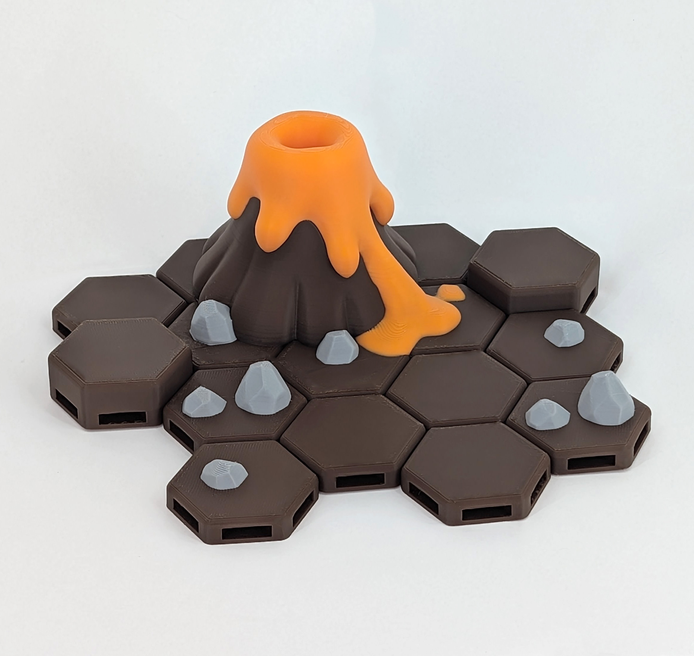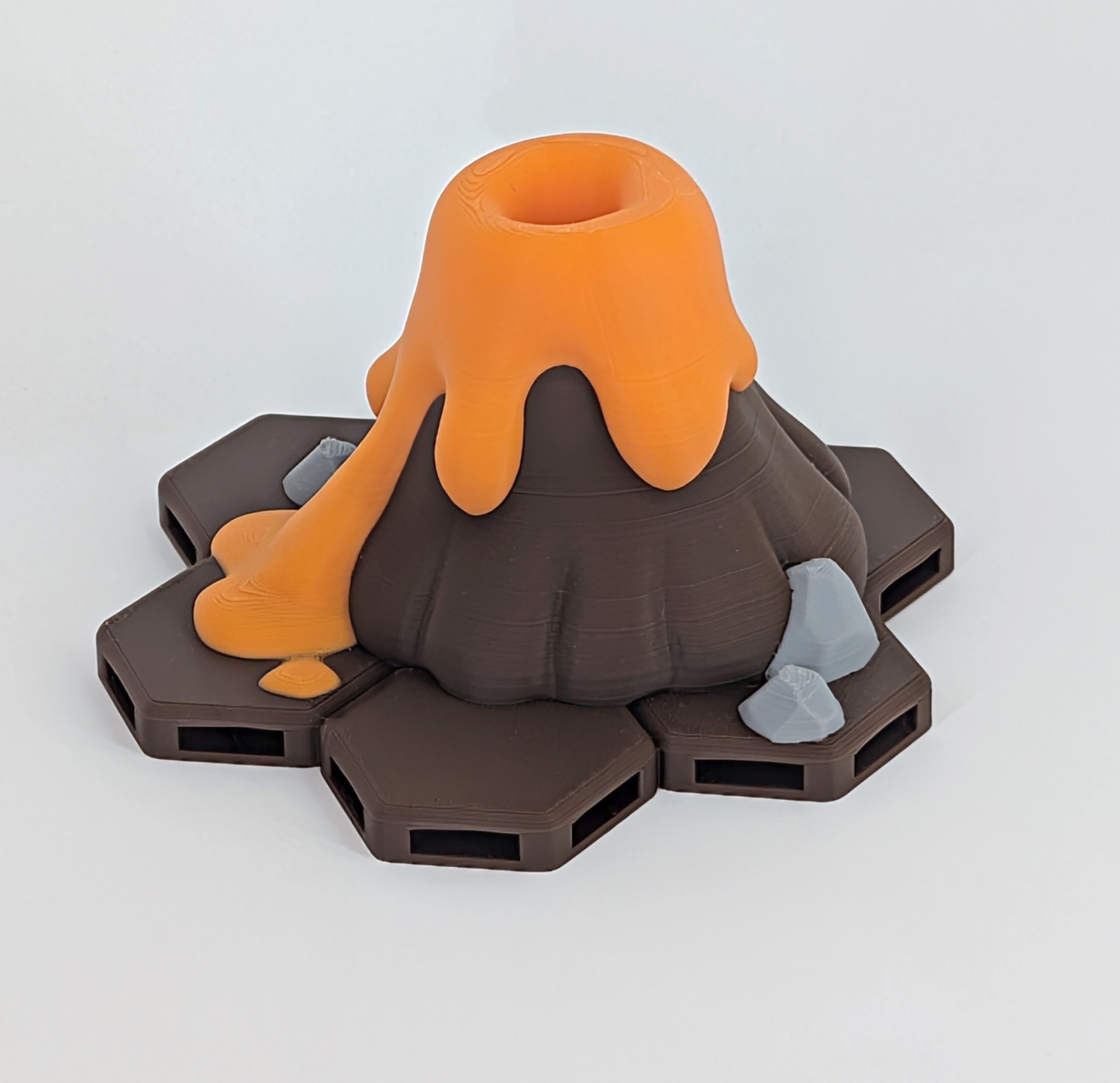 Imagine it as the centerpiece of your desk, with creatures arranged around its slopes like guardians of a molten kingdom. Picture it on a bookshelf, where its jagged peak rises above your favorite novels. Or let it anchor a collection of Hex Habitats, forming a chain of habitats that tell a story across your display. Wherever it goes, the Volcano 3D Printed Hex Habitat brings energy, drama, and a spark of volcanic personality.